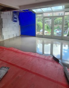 Een krimpnet onder de egaline vloer om een spanningsvrije ondervloer te creëren voor de gietvloer
