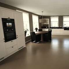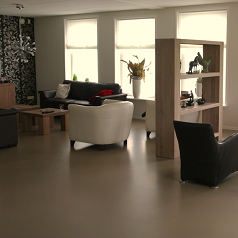 Onze Newstyle Topline gietvloer systeem bestaat uit verschillende lagen die gezamenlijk ca. 3 millimeter dik zijn. De vloer voelt comfortabel, ziet er warm uit en is zeer makkelijk in onderhoud. Onze Topline gietvloer lakken we af met een UV bestendige kleurlak, waardoor dit uiteindelijk geen invloed heeft op de UV stabiliteit (= kleurvast). Hierdoor blijft u de esthetische waarden behouden van een design vloer (ideaal voor slaap-/ woonkamers, zolder ruimte en openbare ruimtes).