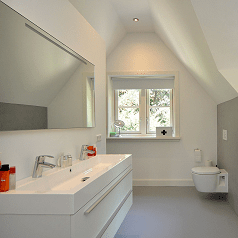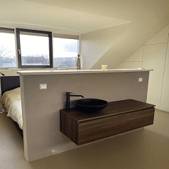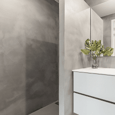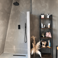 Newstyle wandafwerking geeft uw ruimte een moderne, soms zelfs een industriële betonlook. Niet kil, maar juist een moderne en warme natuurlijke look. Dat komt doordat de basis bestaat uit vermalen rotsgesteente. Door de toevoeging van hoogwaardige bindmiddelen, ontstaat een slijtvaste waterdichte pasta die wij op uw muren aanbrengen. De producten van Newstyle wandafwerking zijn ongevoelig voor bacteriën of schimmel en makkelijk schoon te houden. Hoewel het product uit keiharde mineralen bestaat, blijft de wand toch ademend waardoor grote verschillen in luchtvochtigheid mogelijk zijn. Dat is met name van belang in uw badkamer. Door de naadloze wandafwerking heeft u geen last meer van vuilophoping tussen de tegelvoegen. Kiest u voor wandafwerking dan kiest u voor een mooie en strakke uitstraling met makkelijk onderhoud!